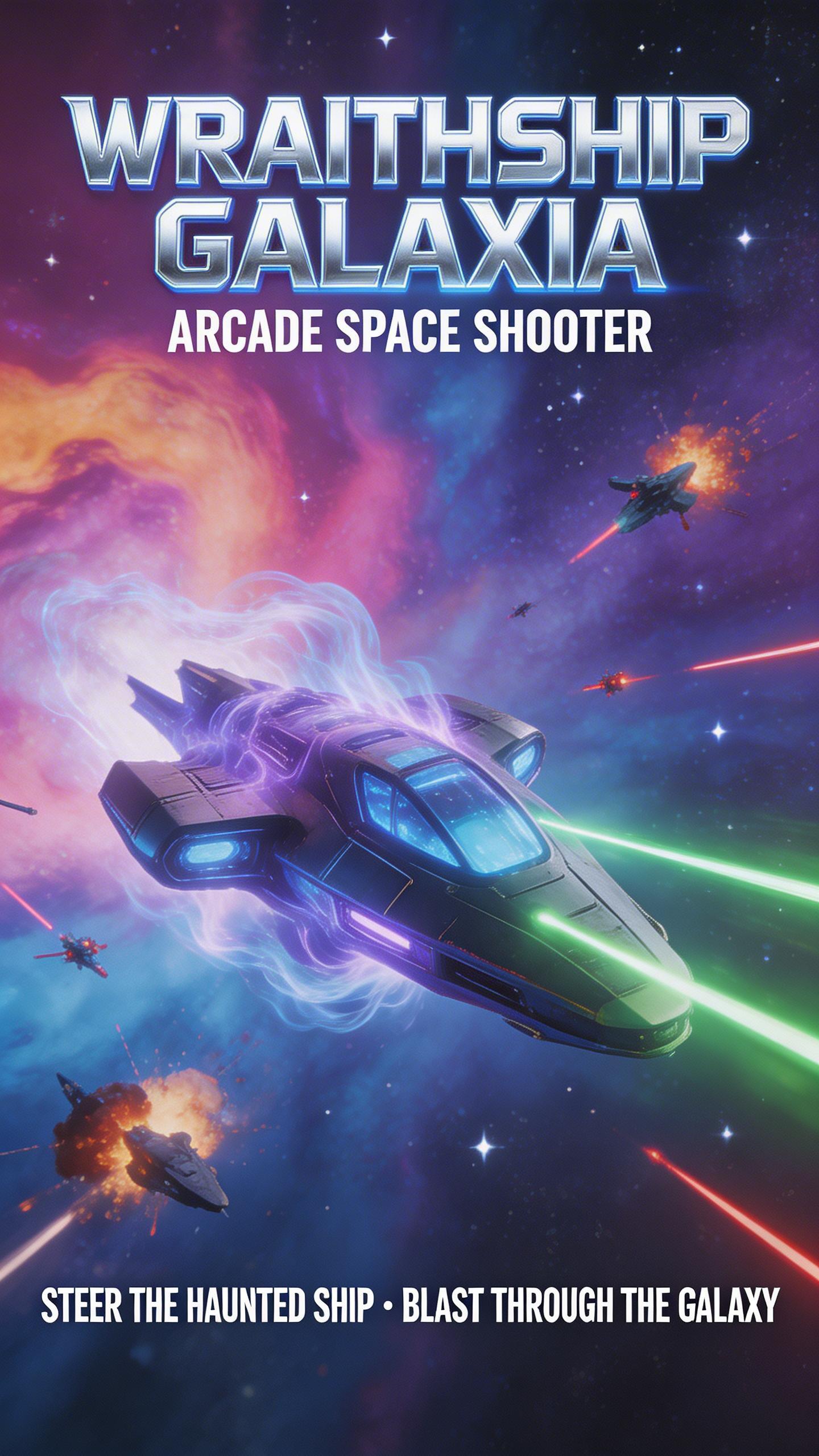 Wraithship Galaxia is an arcade space shooter where you steer a haunted ship and blast incoming ghost fleets.