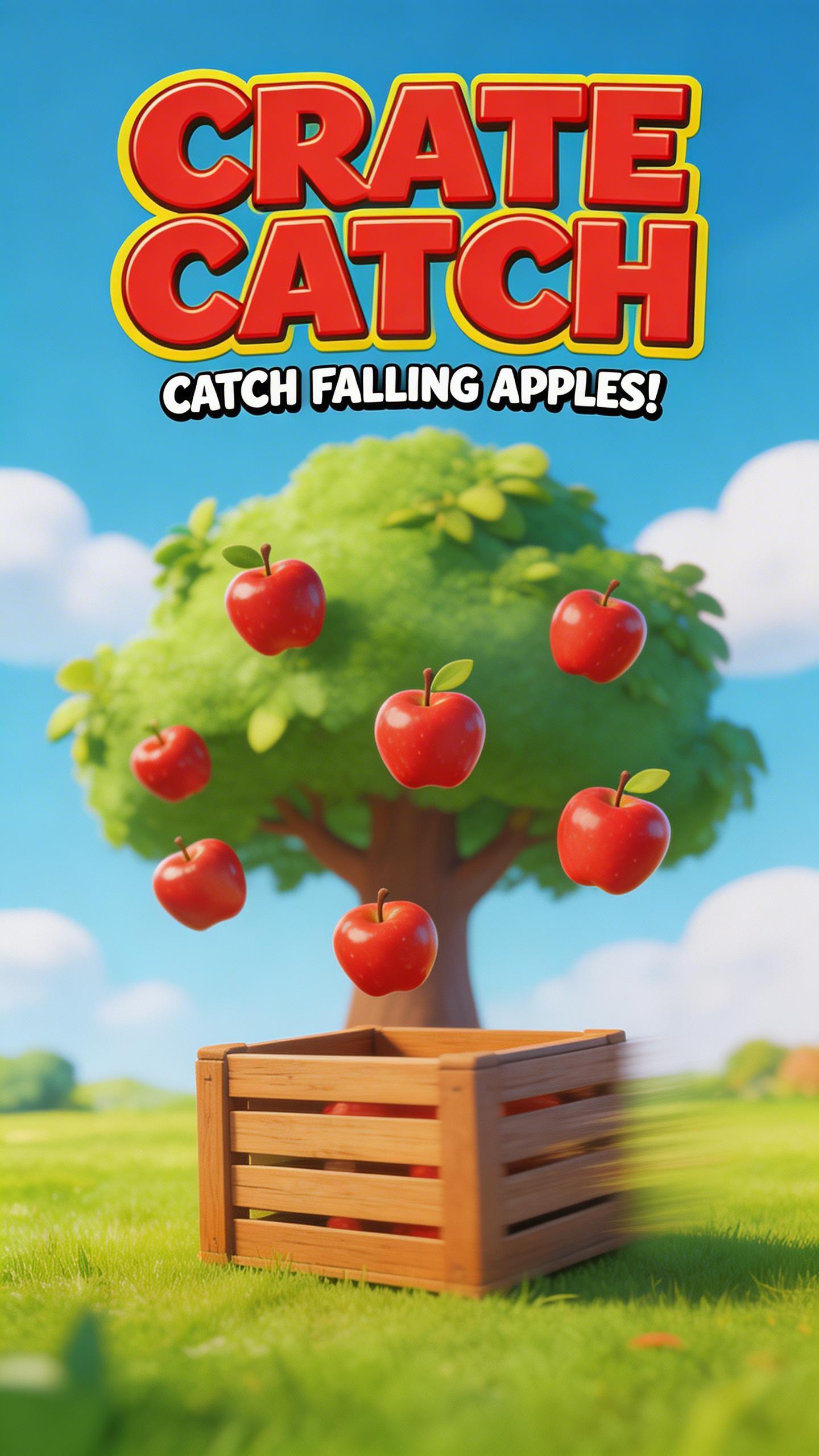 Catch falling apples by sliding a crate under a big apple tree. A crate, apples, golden apples, and leafy branches fill the orchard scene 🍎✨📦🌳. Cream, green, red, and gold give the game a bright playful look.