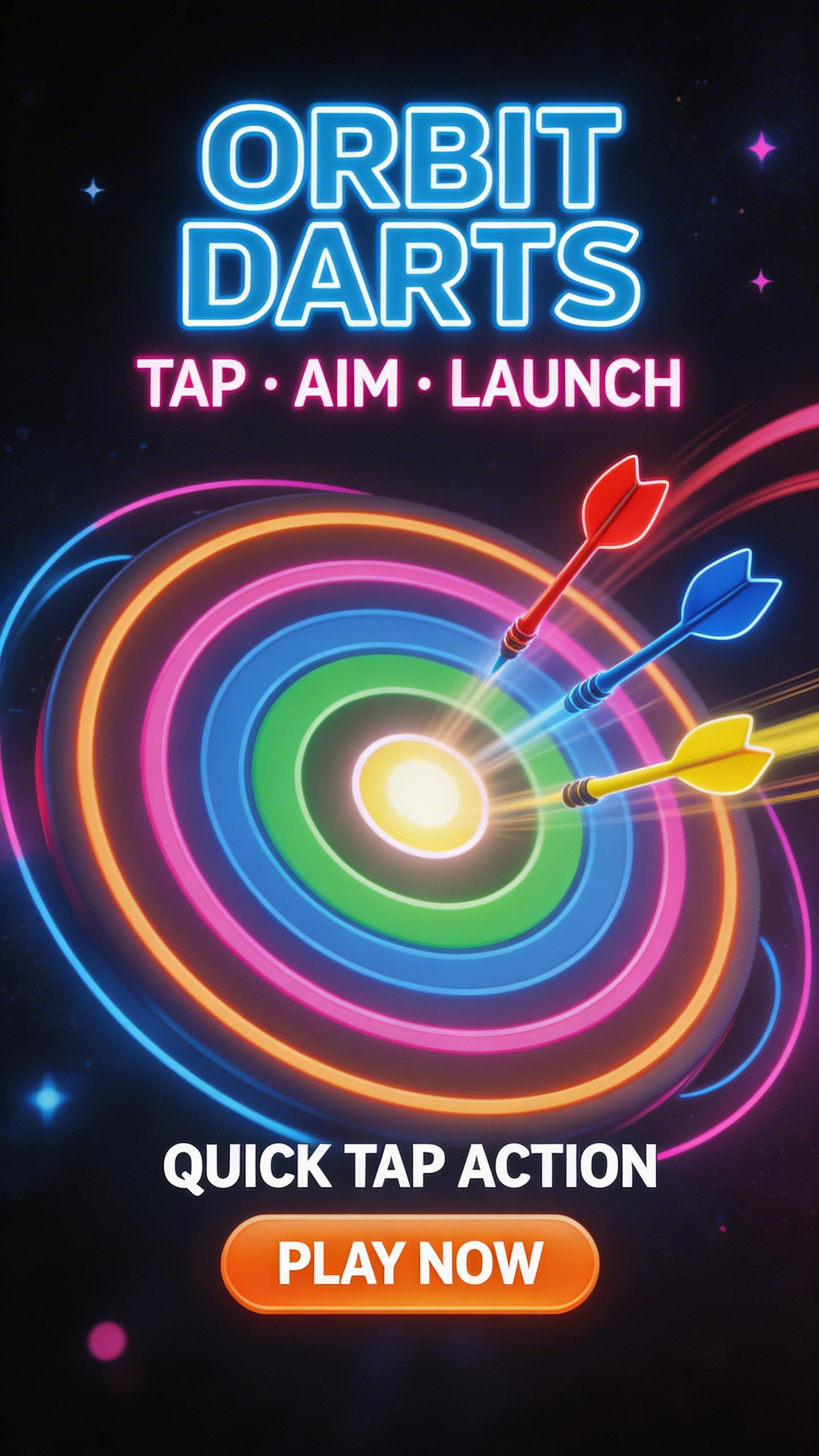 Orbit Darts is a quick tap game where you launch darts at a spinning circular target to earn points and build your high score.