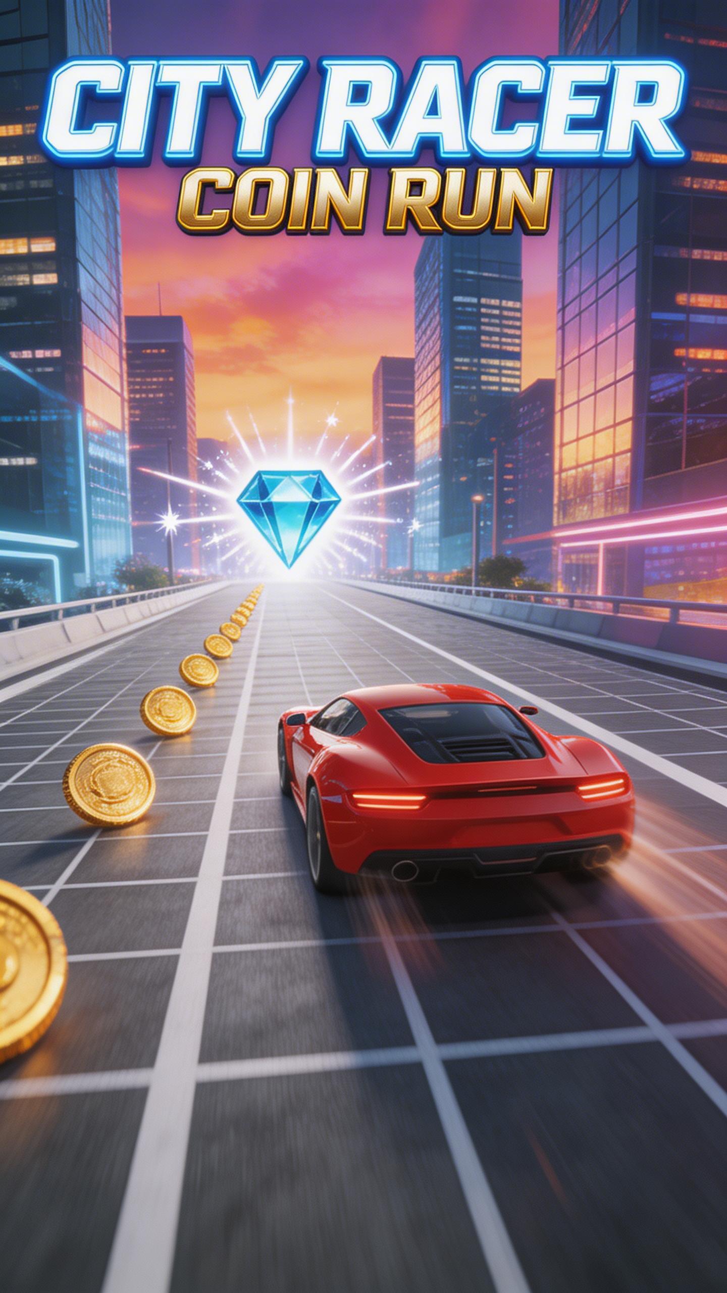 Drive a small red car through a grid city collecting golden coins (🪙) and search for a glowing diamond (💎).