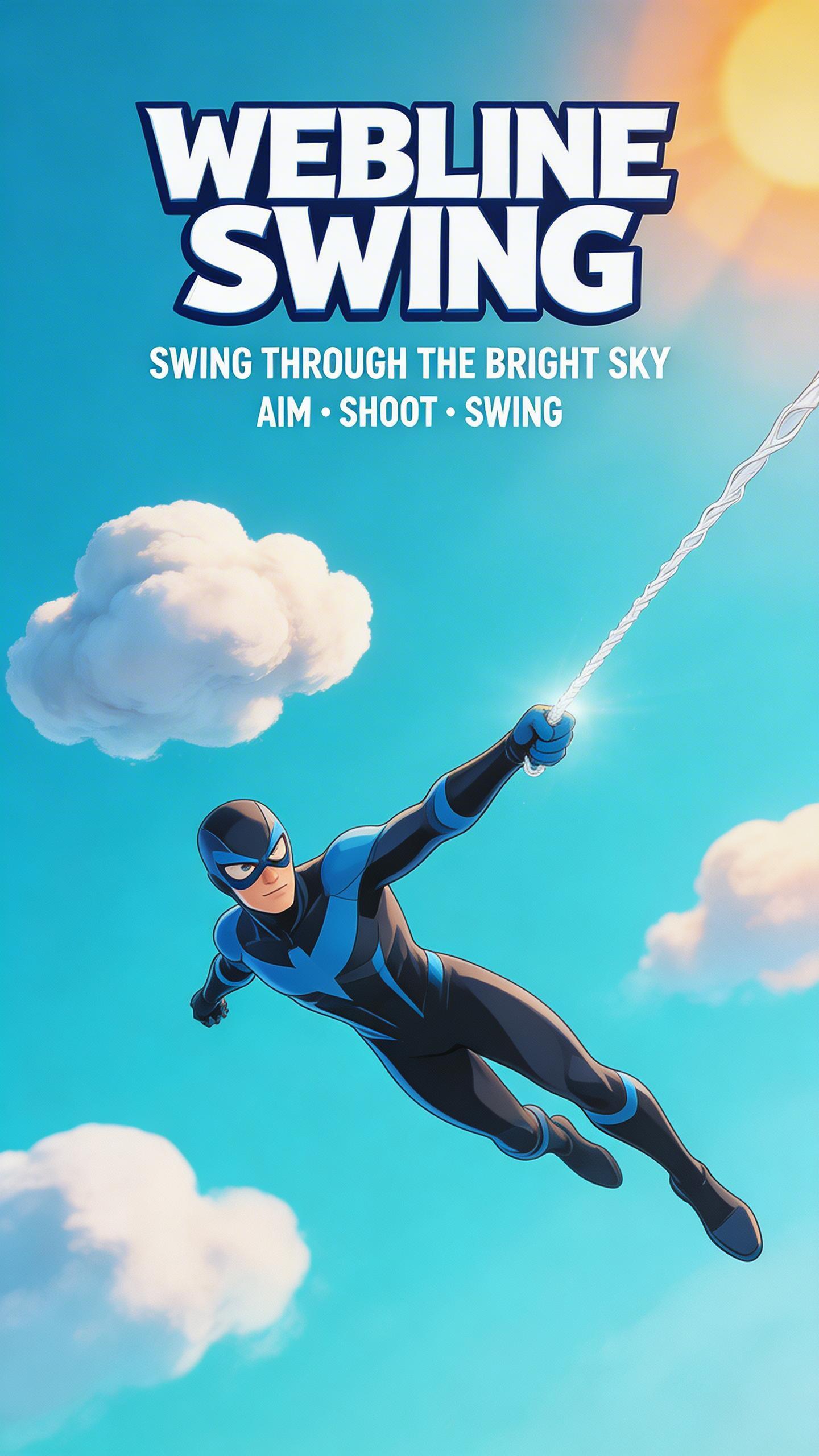 Swing through a bright sky by aiming and shooting a web rope to catch floating cloud platforms while you move forward, with the hero passing through platforms and only the rope interacting with them.