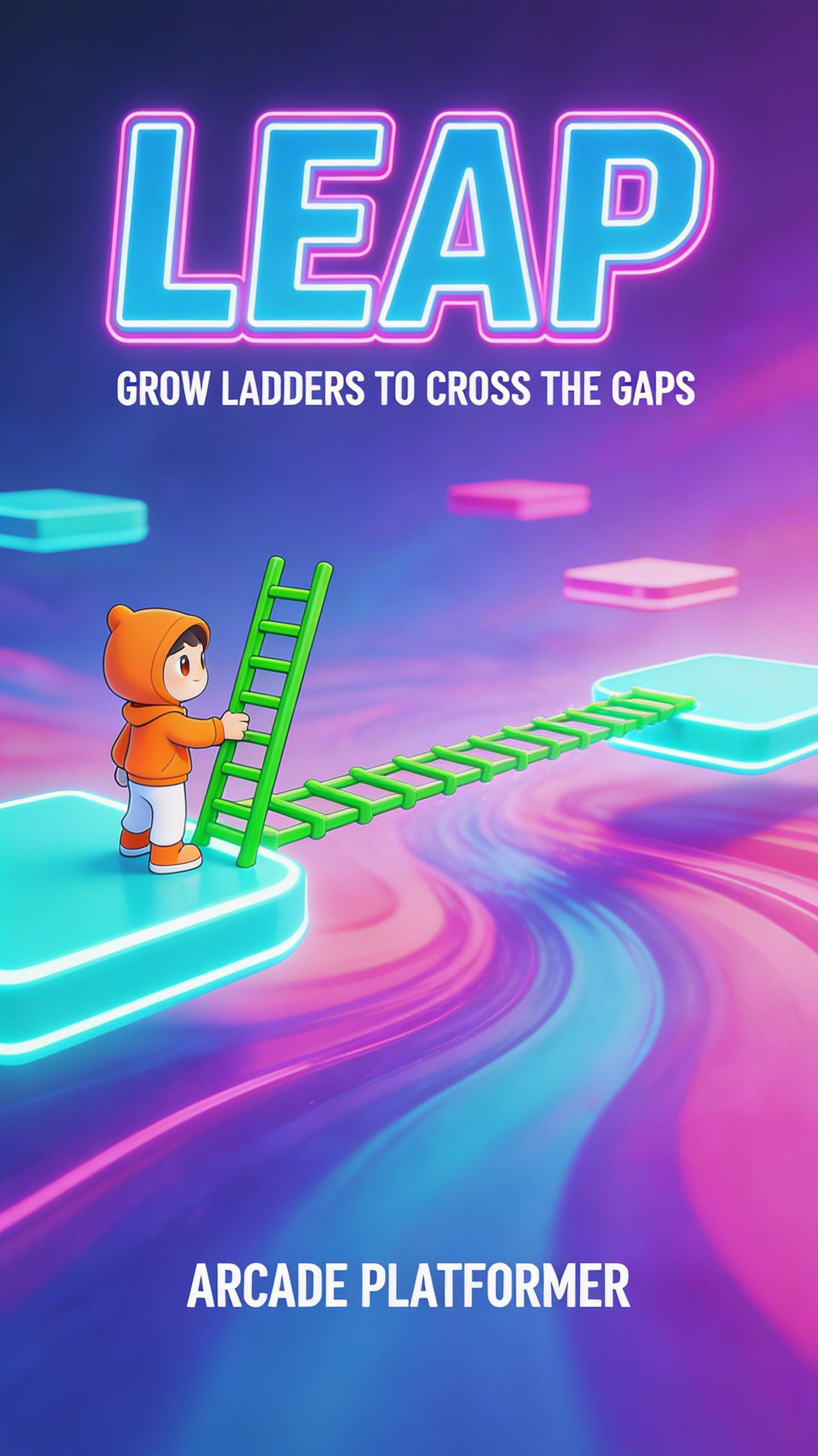 Leap is an arcade game about growing ladders to cross gaps and reach new platforms. Perfect edge placements, poles, and balloons add extra challenge and rewards 🪜🪵🎈🏃.
