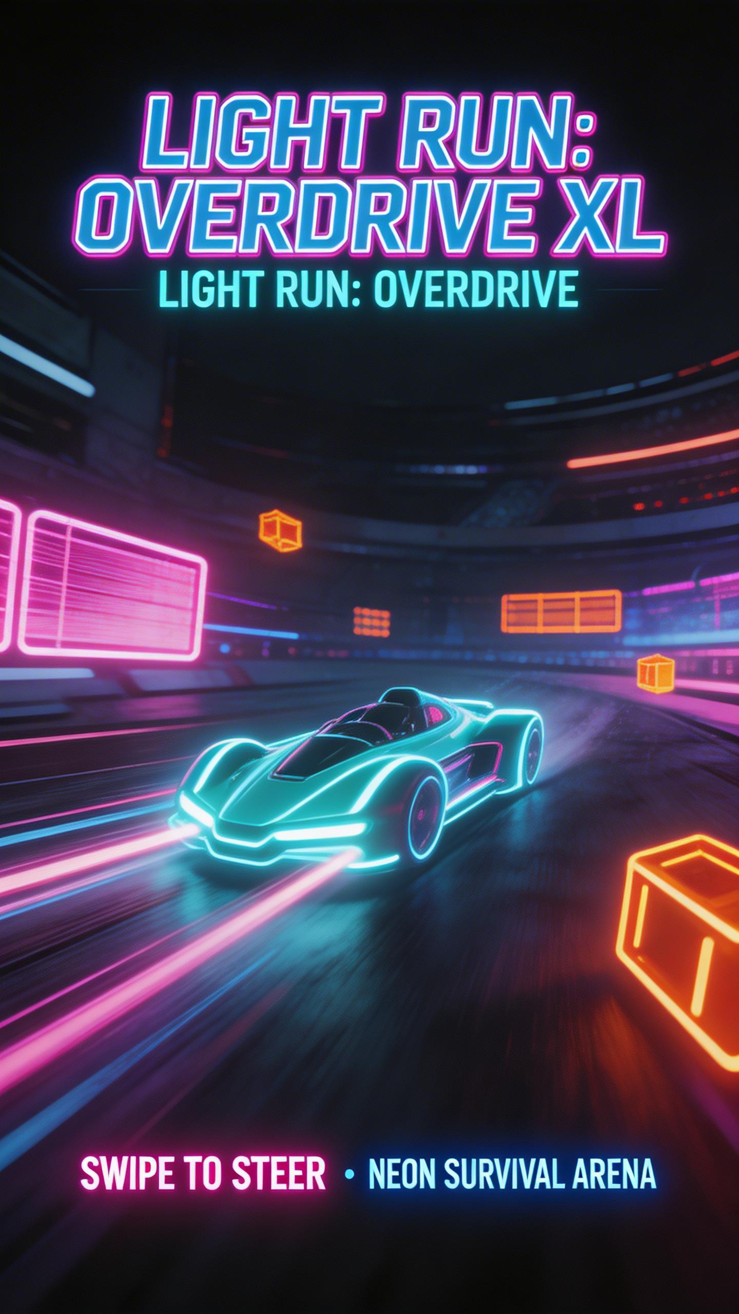 Light Run: Overdrive is a neon survival arena game where you swipe to steer a light rider and try to stay alive on a glowing grid.