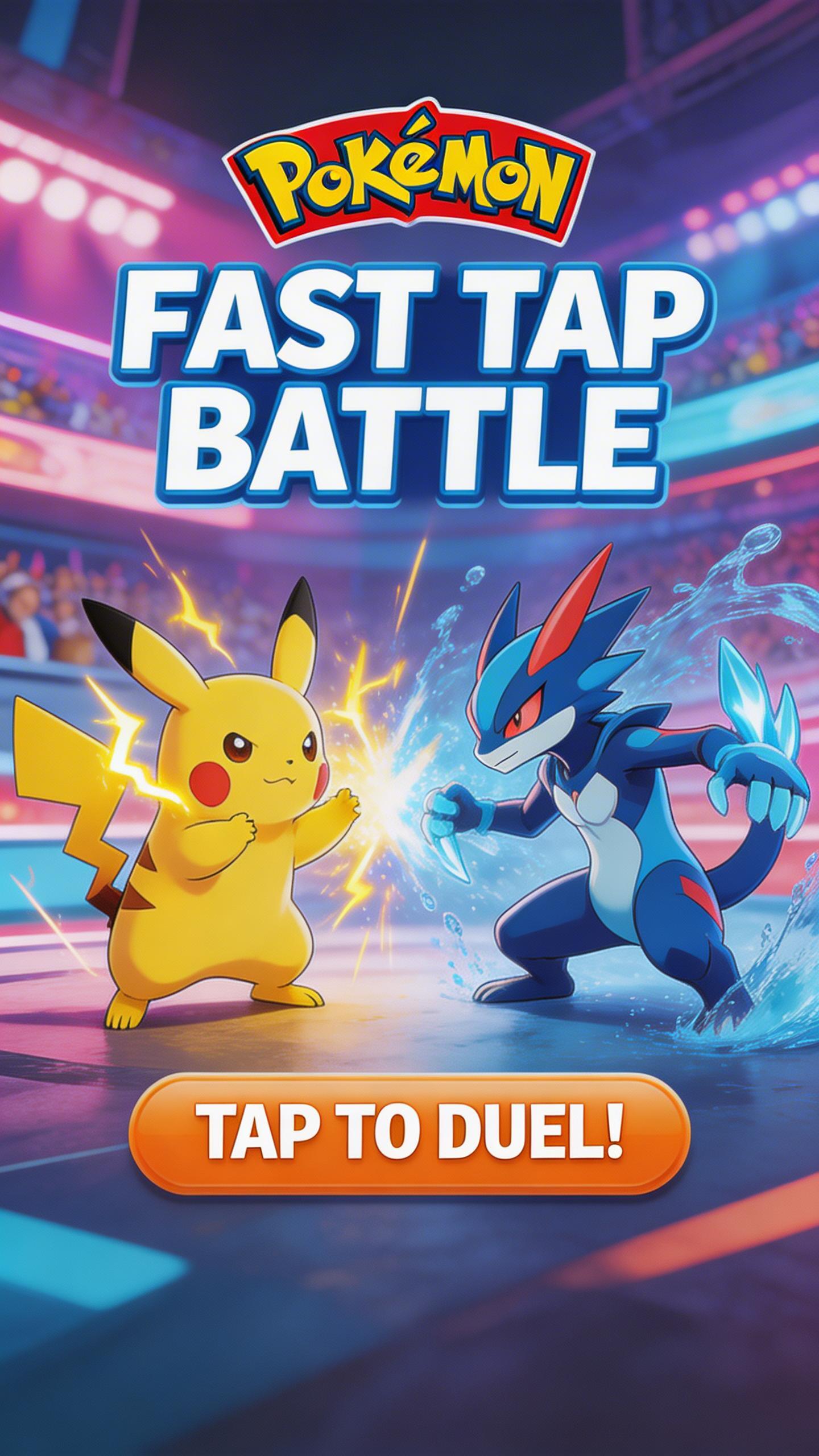 Pokemon is a fast tap battle where you control a tiny pocket creature and duel rivals. Main elements are elemental moves using emojis 🔥, 🌊, 🌿, ⚡ plus satisfying particle bursts and colorful projectiles.