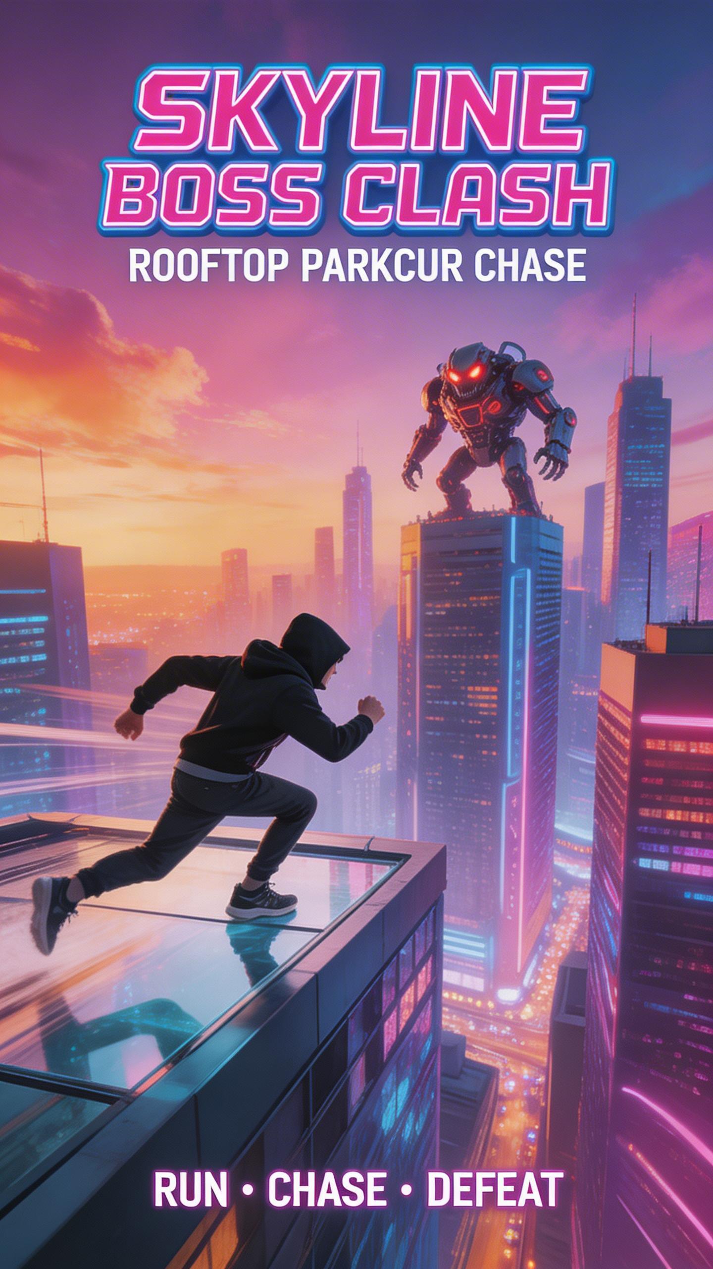 Boss Clash is a fast rooftop running game where you chase a huge boss across tall city platforms and dodge hazards while racing the clock.