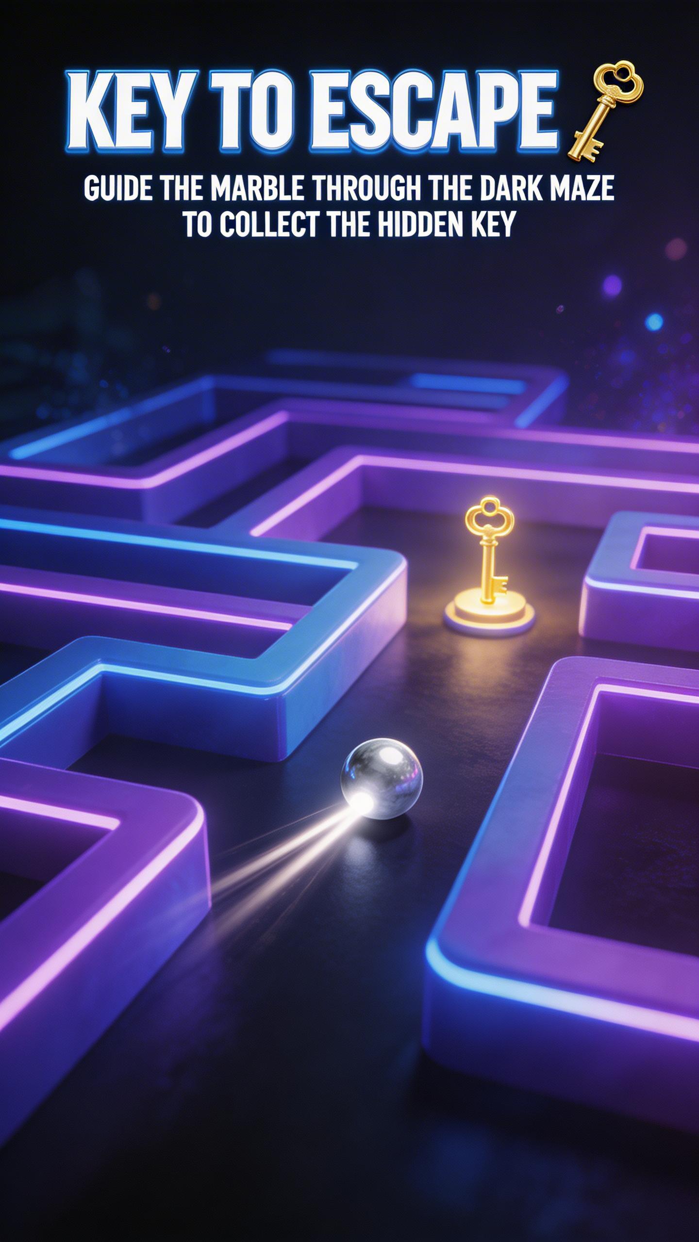 Guide a rolling marble through a dark maze to collect a hidden key 🔑 and then reach the glowing goal ✨.
