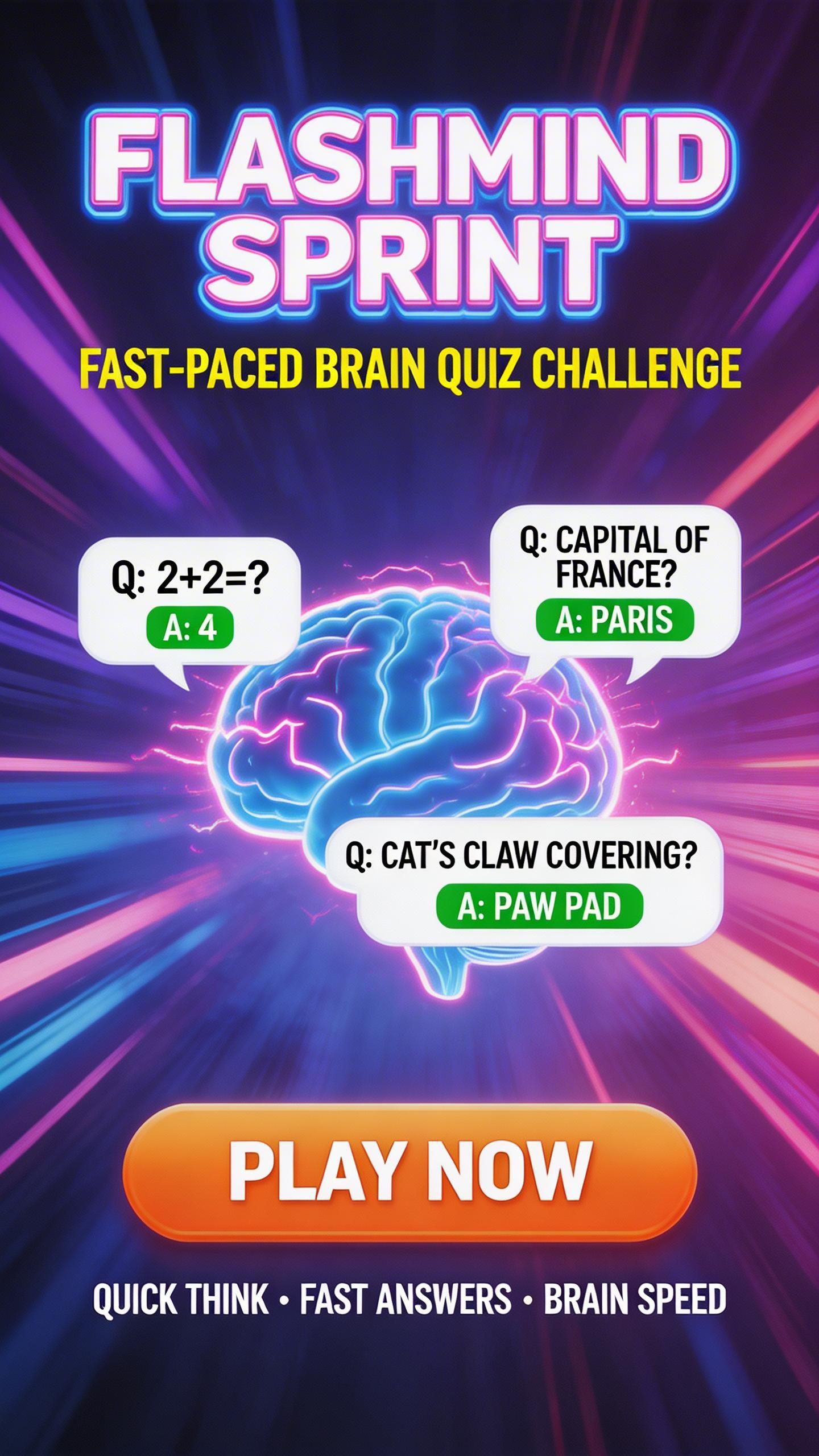 FlashMind Sprint is a fast-paced brain game where you answer quick questions before the timer runs out.
