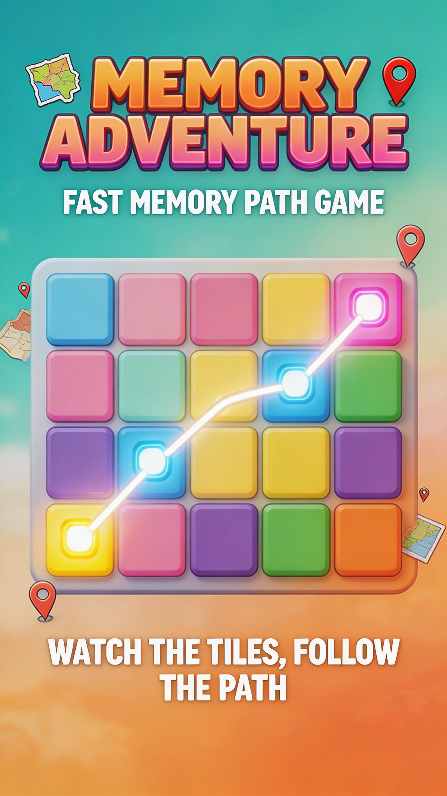 Memory Adventure πΊοΈπ is a fast memory path game where you watch tiles light up, then tap them back in the same order.