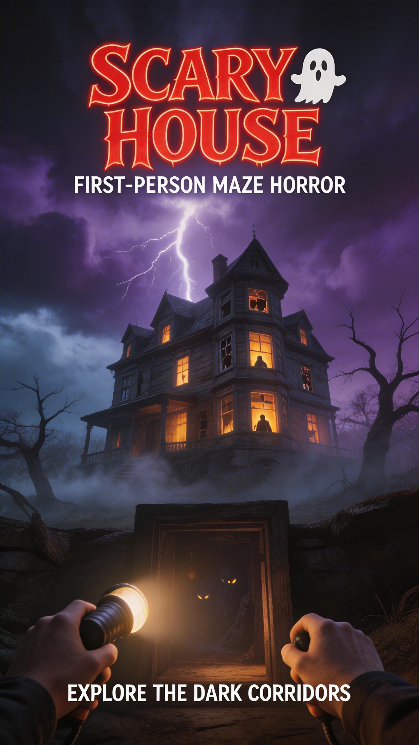 Scary house 👻 is a first-person maze game about exploring dark corridors and hunting for keys. Ghosts, traps, drinks, doors, and a minimap shape each run.